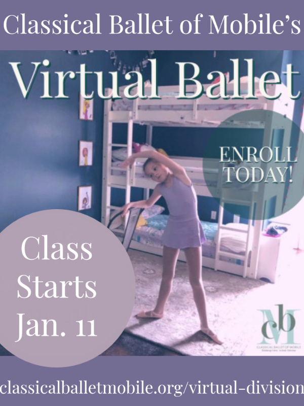 Schola Rosa is proud to be sponsoring Classical Ballet of Mobile's Virtual Division. Ballet classes are available online beginning January 4th for Ages 4 and up! You may enroll easily through our website HERE.
